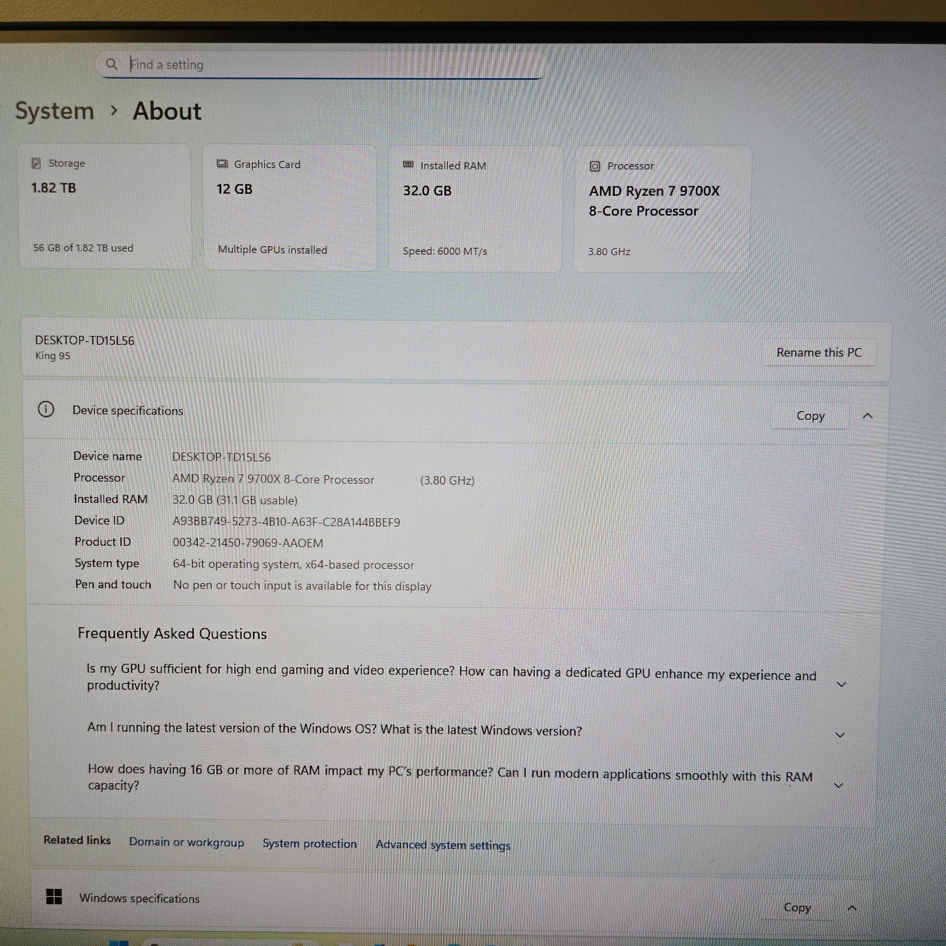 | Processor | Ryzen 7 9700X